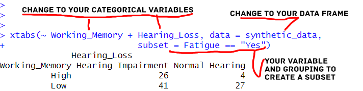 Whether analyzing psychological survey data, analyzing survey responses, or investigating trends in hearing science research, cross-tabulation in R provides a good tool to analyze and interpret categorical data. In this post, we will generate synthetic data to facilitate hands-on learning, enabling you to practice creating and interpreting cross-tabulations. Let us begin and learn to create and interpret contingency tables in R.